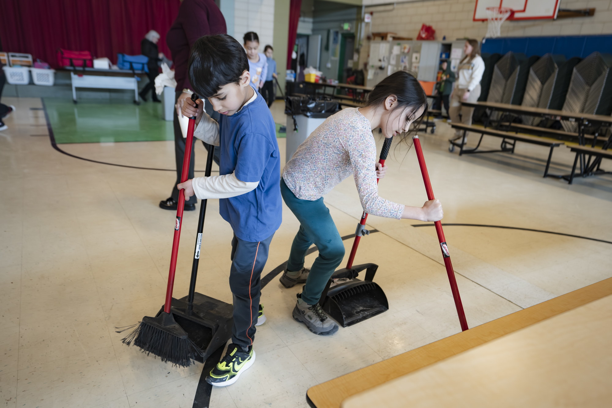 Before students conduct service activities in their local community, students first learn how to work as a team in service of their school community. Students in grades four through eight work on multi-grade cleaning teams, led by an eighth grader, to keep the cafeteria clean after each lunch period. Students learn first-hand how to lead by example, balance their teammates wants and needs, and the impact their actions have on other members of their community. Students naturally develop greater conscientiousness, patience, and empathy as they work together in the spirit of community care.